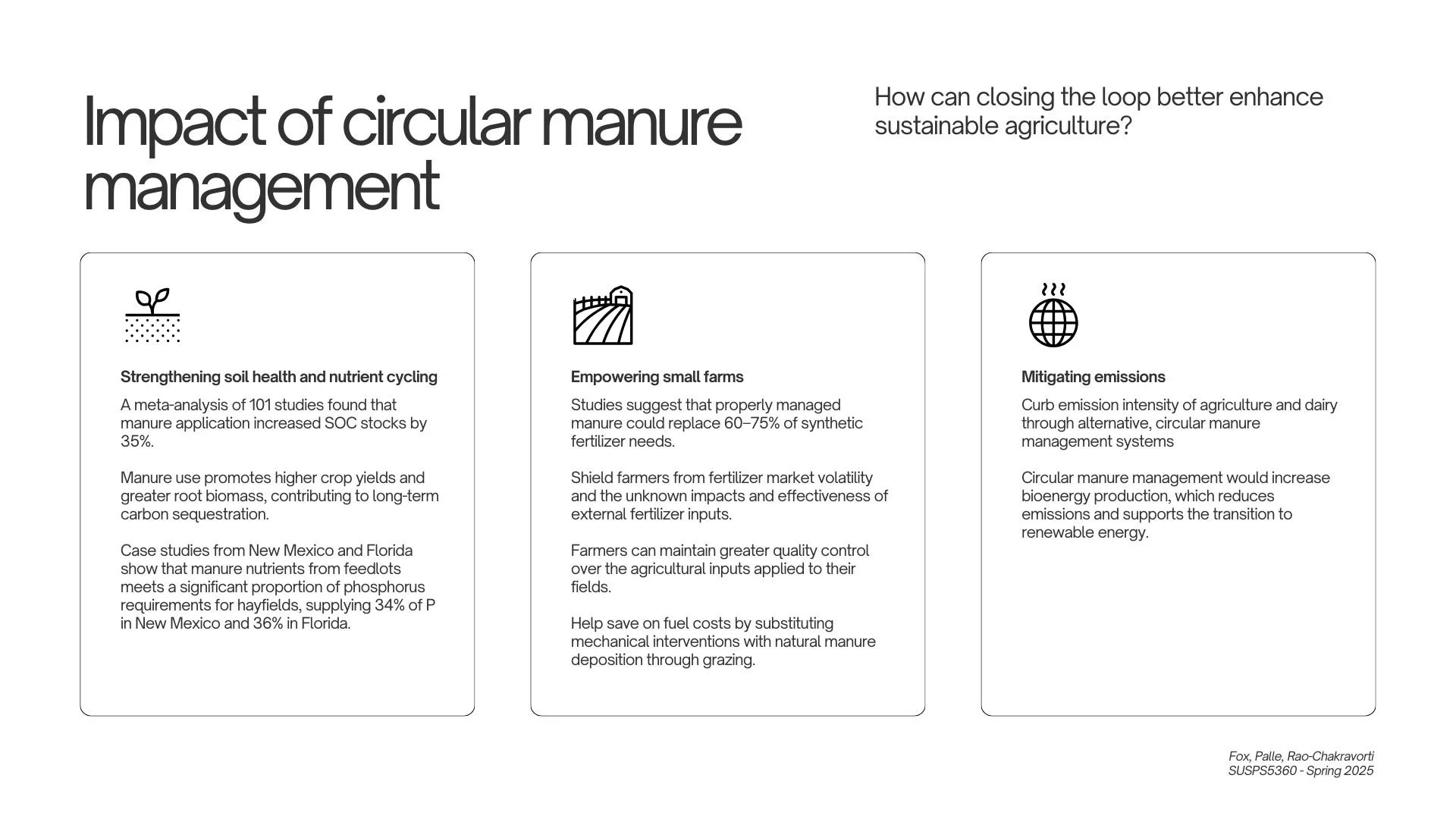 Conducted a meta-analysis report and examined the environmental, economic, and social impacts of circular manure management practices in the American farm system.